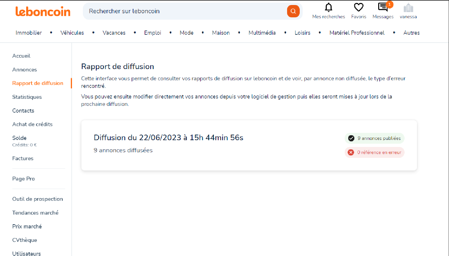 En tant que professionnel équipé d’un logiciel métier, vous êtes amené à importer de nombreuses annonces simultanément. Le rapport de diffusion vous permet de vérifier que toutes vos annonces sont bien en ligne et visibles sur leboncoin.